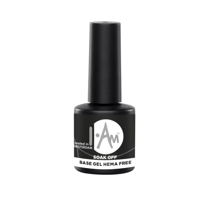 I.Am Soak Off Base Gel HEMA Free tai skaidri gelinio lakavimo bazė be HEMA, kuri puikiai sukimba su natūralia nago plokštele ir laikosi net iki 4 savaičių.